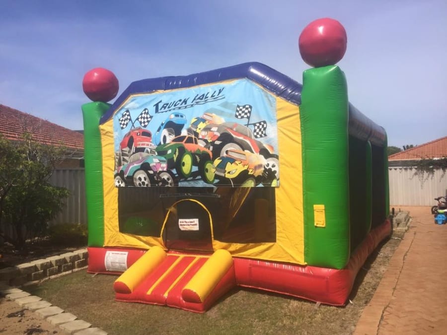 After a quick pit stop to remove the little tyres around their feet, kids are free to roll up the inflatable ramp and enter the a well-shaded, fully padded bouncy castle where they can keep on truckin’ in comfort and safety.