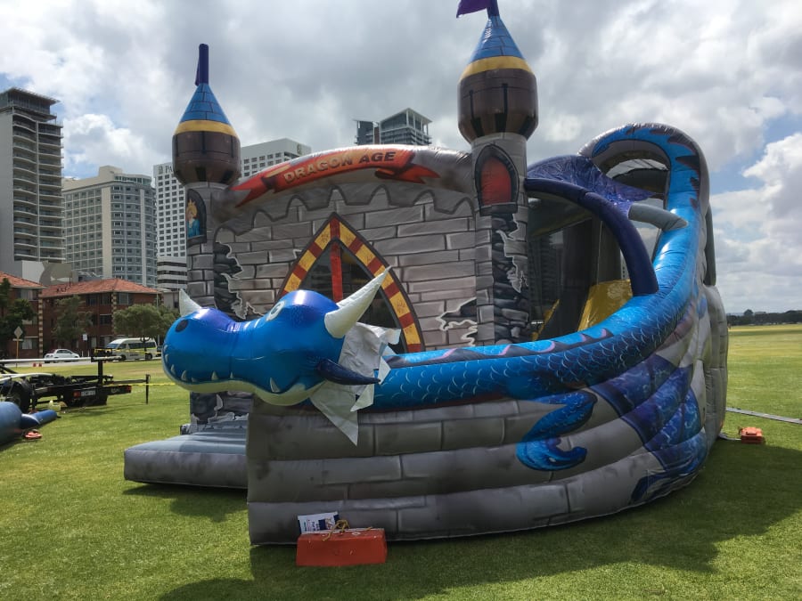 This beast is awesome fun for any little warriors who want to fight off the dragon! This legendary monster will have kids spell bound! Come inside this mythical beast where you will bounce, slide and enjoy the Dragon medieval Age. Our Dragon Bouncy Slide hire Perth will impress kids and big kids as he's awesome!
