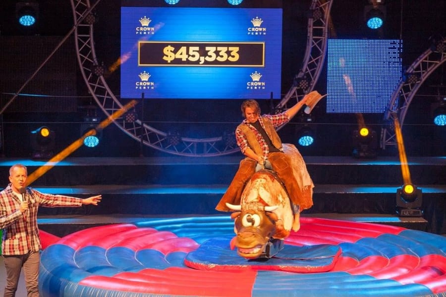 The Bucking Madcow is great amusement hire in Perth for all ages ranging from 2 year olds to the rodeo riders and is the official model used in the Guinness World Records mechanical bucking bull riding.